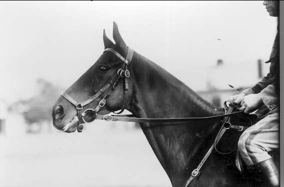 Officers tjänstehäst med hoppningssadel. Ryttarens uniform m/10.