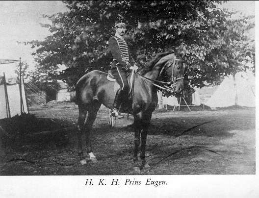 Framsidan föreställer H K H prins Eugen på tjänstehäst utanför sitt tält på Sanna hed. På insidan program för höstsammanträdet 5 dec 1942 på Sanna hed.