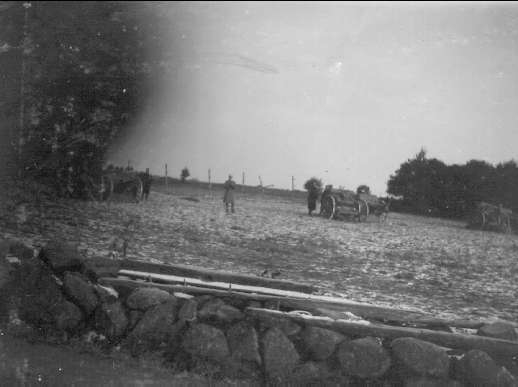 Titel: Fälttjänstövningar i Västergötland 1912 med 4. Skv K 7 i Malmö, skvadronchef löjtnant Ragnar Aaby- Ericsson. Vita band runt uniformsmössa markerar att skvadronen tillhör fiendesidan.