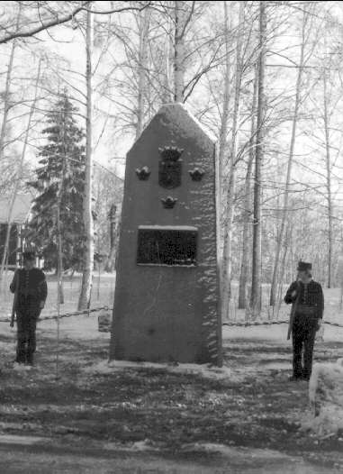 I 3:s minnessten på Sannahed. Två livgrenadjärer som hedersvakt.