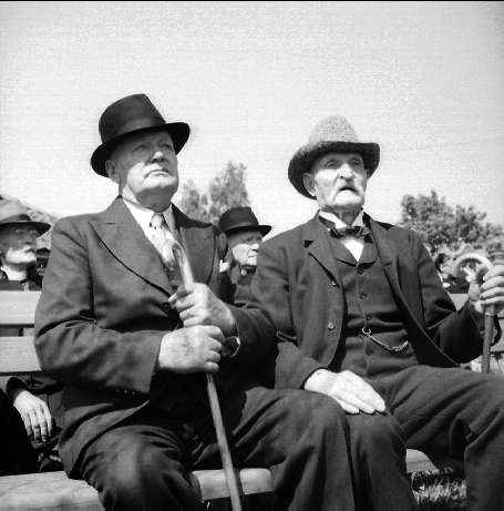 Avtäckning av minnesstenen i Fellingsbro, några äkta gamla husarer bland de många åskådarna.