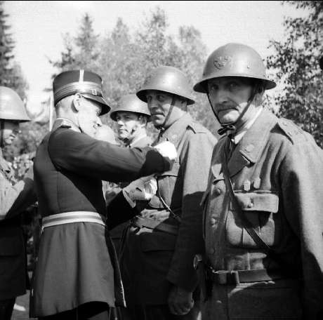 Titel: Minnessten i Fellingsbro avtäckt. Lottor och hemvärnsmän dekoreras. 6/6 1948.