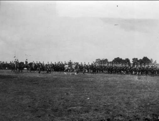 Regementet till häst uppställd på fältet mellan lägret och "källan" inspekteras av prins Eugen. 1/8 1920.