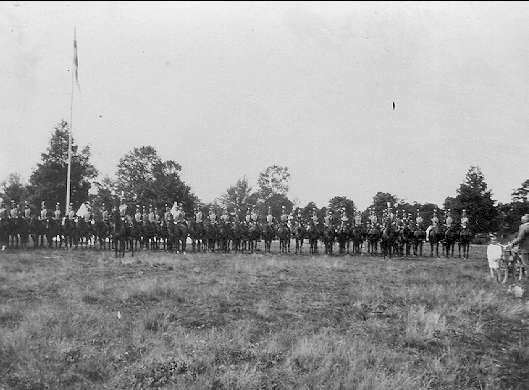 Regementet till häst uppställd på fältet mellan lägret och "källan" inspekteras av prins Eugen. 1/8 1920.