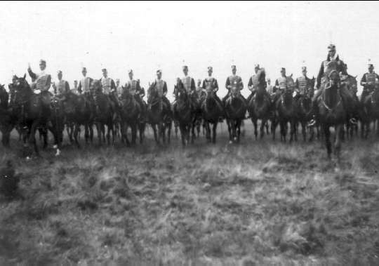 Regementet till häst uppställd på fältet mellan lägret och "källan" inspekteras av prins Eugen. 1/8 1920.
