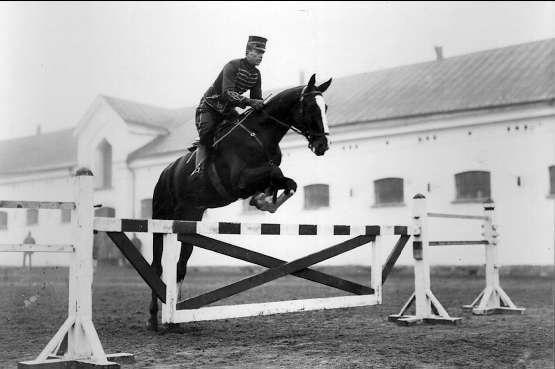 Träningshoppning på Strömsholms stallplan utanför hingststallet.
