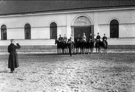 Avlämning framför hingstridhuset på Strömsholm. Eventuellt inspektion.