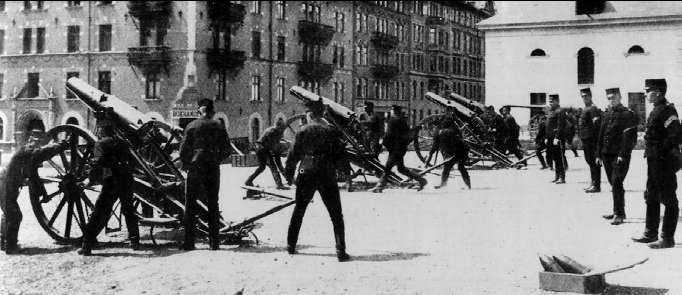 Art. Pjäsexercis med 12 cm haubitsbatteri m/1881.