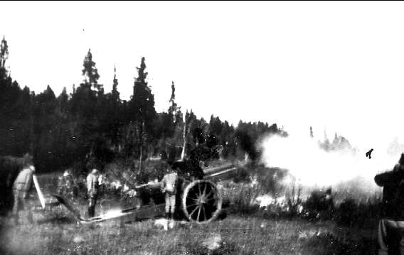 Titel: Haubits 10,5 cm m/17 under eldgivning, år 1920.