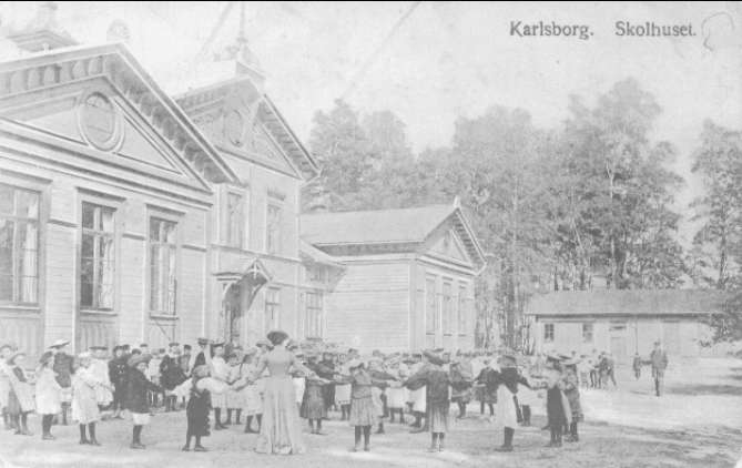 Karlsborg. Exteriör gamla skolhuset Vätterskolan (folkskolan). Skolan byggd i mitten på 1880-talet. Bilden troligen från 1890-talet.