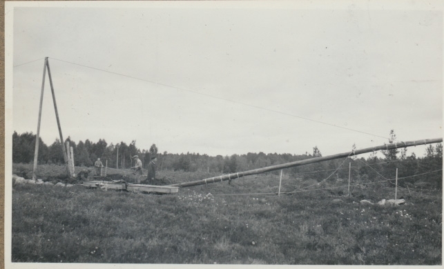 Titel: Kråks radiostation Karlsborg 1920-talet.Resning av antennmaster för KV.