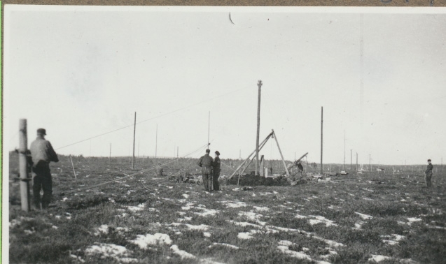Titel: Kråks radiostation Karlsborg 1920-talet.Resning av antennmaster för KV.