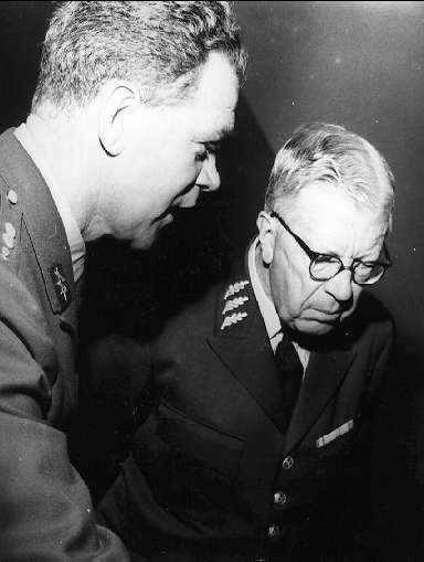 Karlsborg, kungabesök och invigning av museet år 1962. Gustaf VI Adolf och Arne Pohl.