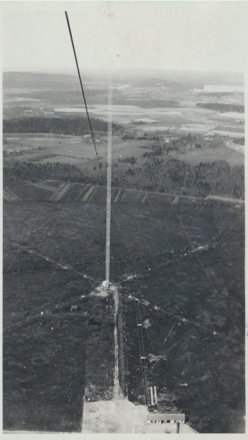 Kråks radiostation Karlsborg 1930-tal. Utsikt från 210 m. mast.