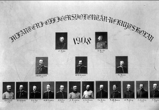 Infanterivolontärskolan Karlsborg, senare rekrytskolan för infanteriets off- och res. off. Aspiranter, 1878 - 1927. Volontärskolan 1908.