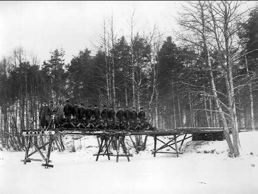 Karlsborg. Ingenjörkåren, broslagning vid våta graven.
