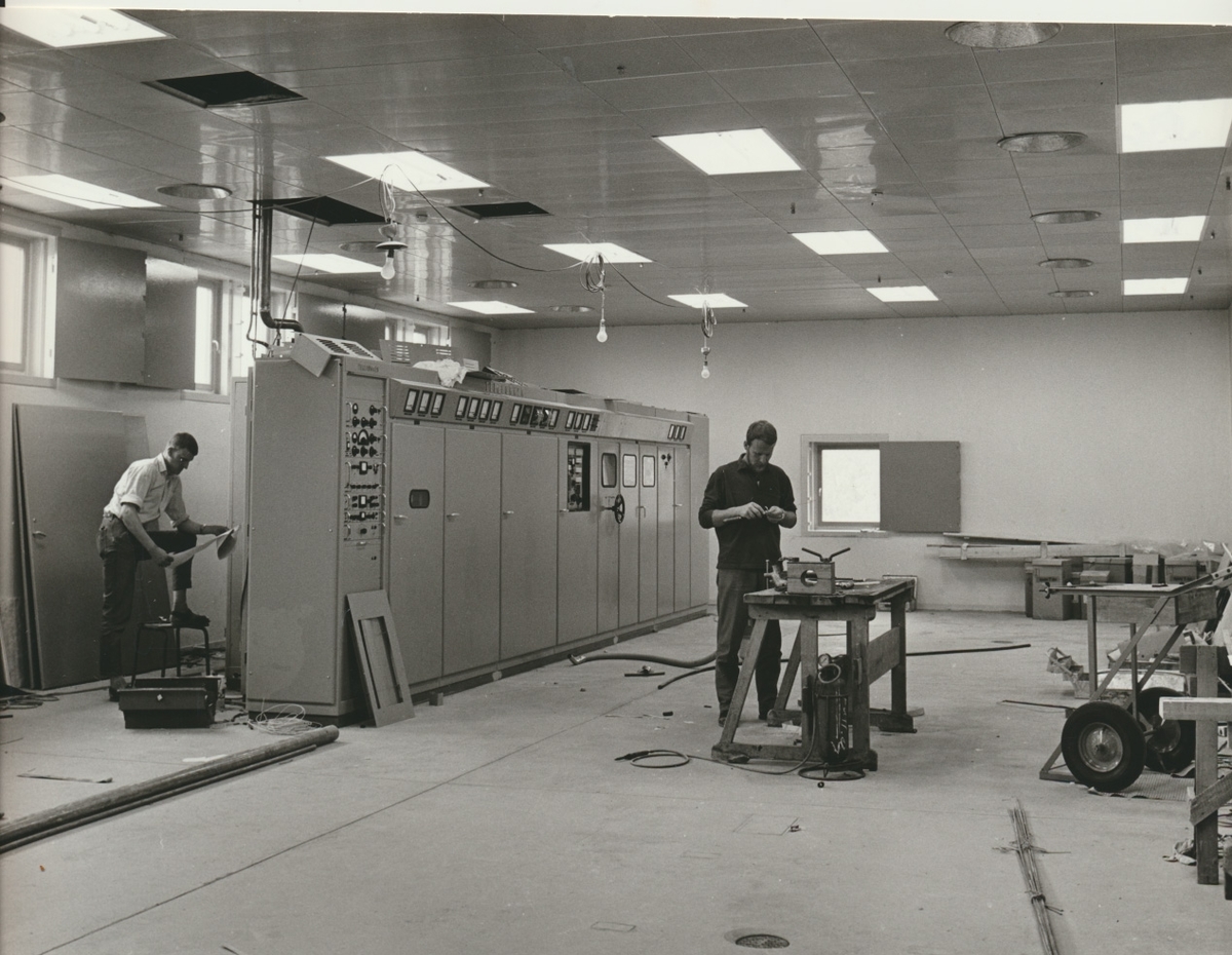 Kråks radiostation Karlsborg 1964.Montering av långvågssändare. Bo Johansson, Alf Oskarsson.