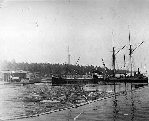 Hamnen i Granvik, omkr 1920. "Arla" lastar massaved. Neg finns.