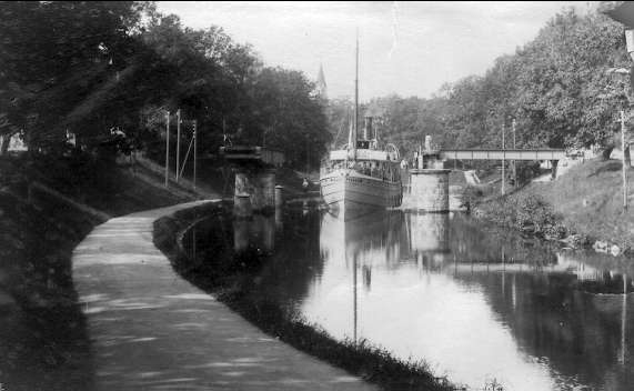 Motala, parti av kanalen, passagerarbåten pallas.