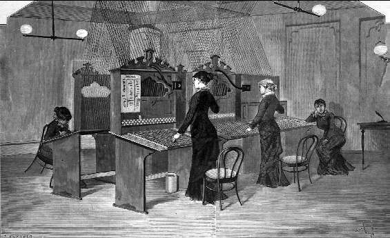 Telefonen i Stockholm: signalrummet på centralstationen. Teckning av Viktor Andrén. Förstoring 30 x 43 cm. Neg finns.