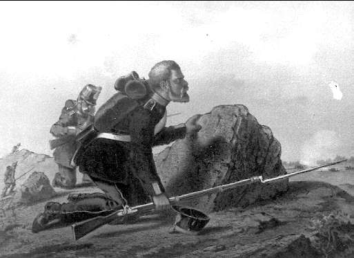 Tecknad skildring ur indelta soldatens liv. Svenska tiraljörer. Förstoring 17 x 23 cm finns.