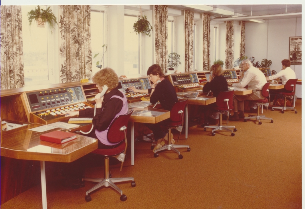 Kråks radiostation Karlsborg 1964. Expeditionsbord för flygtelefoni och kustradio.