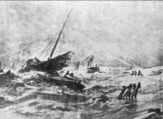 "Råbockarnas sista stunder". Råbockarna fraktade kalksten från Borghamn till fästningsbygget.