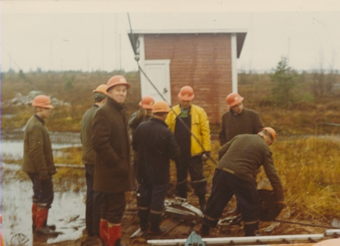Titel: Kråks radiostation Karlsborg 1964. Arbete pågår för upphissning av långvågsantenn.