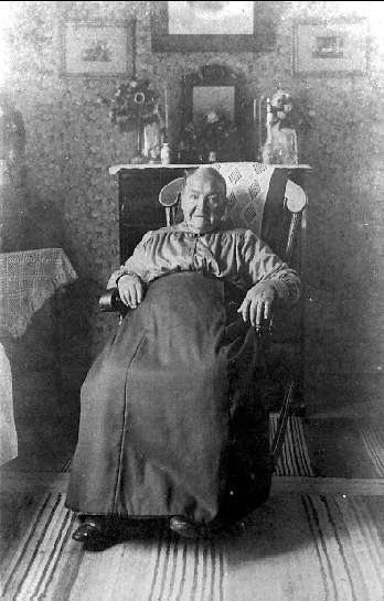 Augusta Bäckman i sitt hem "Jämmerdalen" i Forsvik omkr 1915.