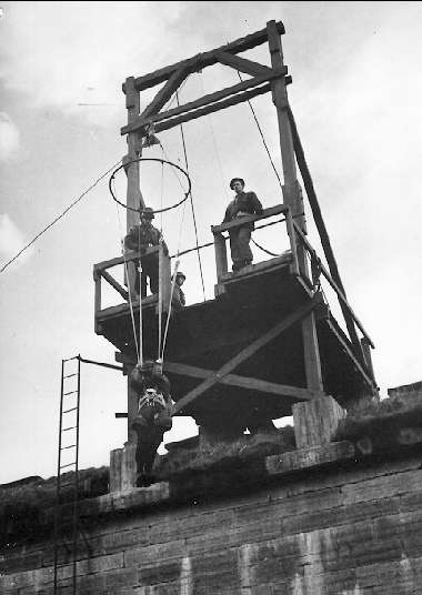 Karlsborg, FJS, hoppövningar från hopptornet på 1950-talet.