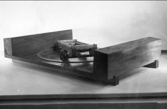 Lavettagemodell, lavett 24-pundig med svänglåda till kanoner. 1/12 av rätta storleken av C D Osterman år 1832. Marinmuseet.
