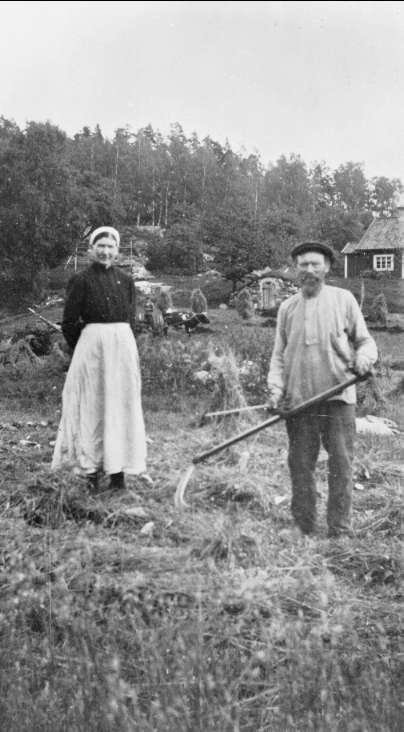 Granvik Hyttehamn, Oscar Eriksson och hans hustru skördar säden.
