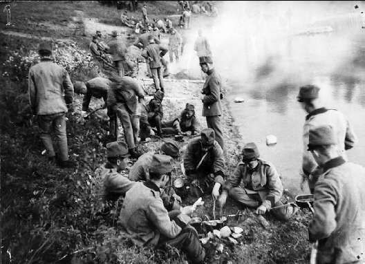 Intendentur fälttjänst, tillredning av mat i fältkök år 1936.