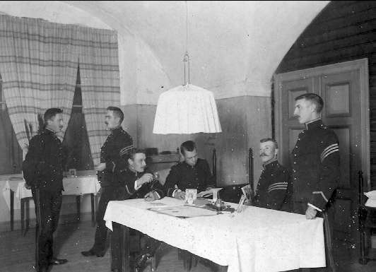 Gruppfoto, volontärer på Mässen år 1902, med bl.a. Nordqvist am. Fabriken Karlsborg, L E Ahlborg.