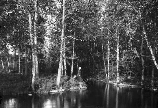 Parti från Forsvik och Göta kanal, fiskande damer. Foto: Alfred Sjöberg. Neg och glasneg finns.
