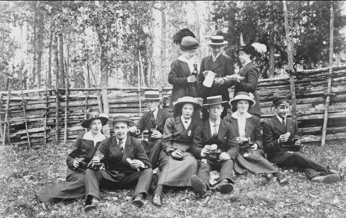 Forsvik, Gökotta i Alexanders hage vid kanalens utlopp i viken, Billströmmen. Förstoring 32 x 50 cm. Neg finns.