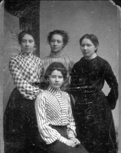 Systrarna Thüst i Ödegården Gräshult. Förstoring 24x18 cm finns.