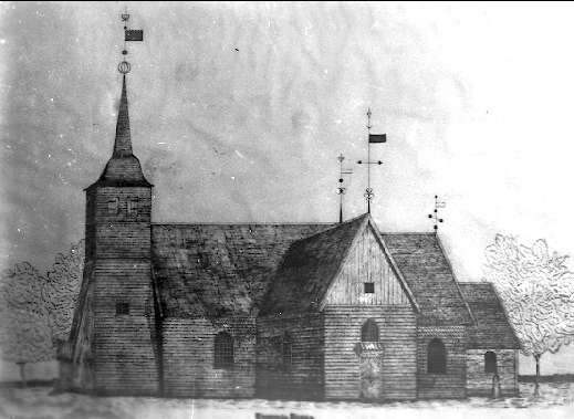 Undenäs, gamla kyrkan, exteriör. Avfotograferade teckningar. Neg finns.