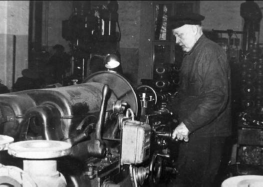 Forsviks bruk. Oskar Persson på Forsviks mekaniska verkstad. Neg finns.