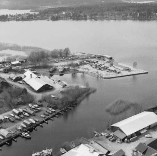 Karlsborg, flygfoto med bebyggelse vid Bottensjön. Endast neg finns.