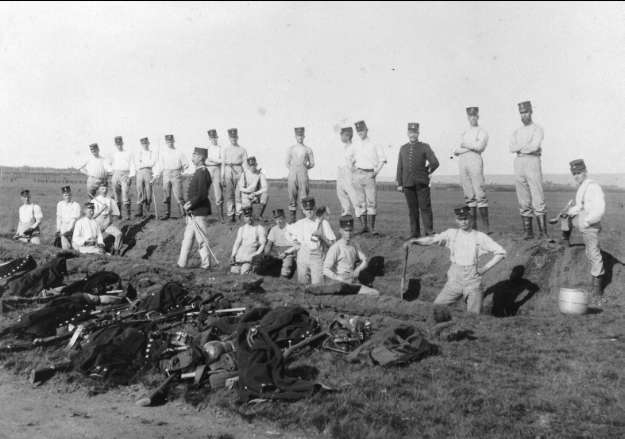 Ingenjörkåren, skyttegrav gräves. Förstoring 29 x 40 cm. Neg finns.