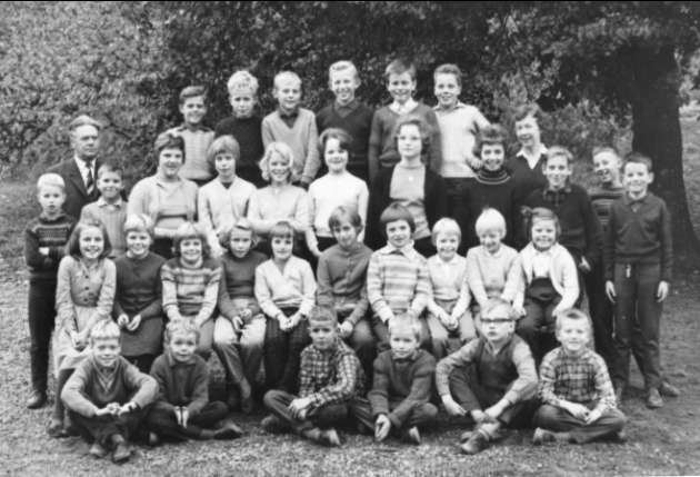 Granviks skola, elever och lärare, utomhus. Endast neg finns.