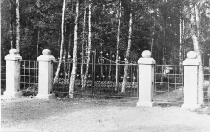 Grindarna till Vikaskogarnas skola. Förstoring 26 x 40 cm. Neg finns.