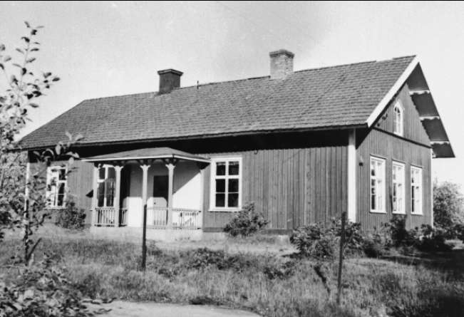 Lindhults skola (Skaga skola), byggd 1909. Förstoring 28 x 40 cm. Neg finns.