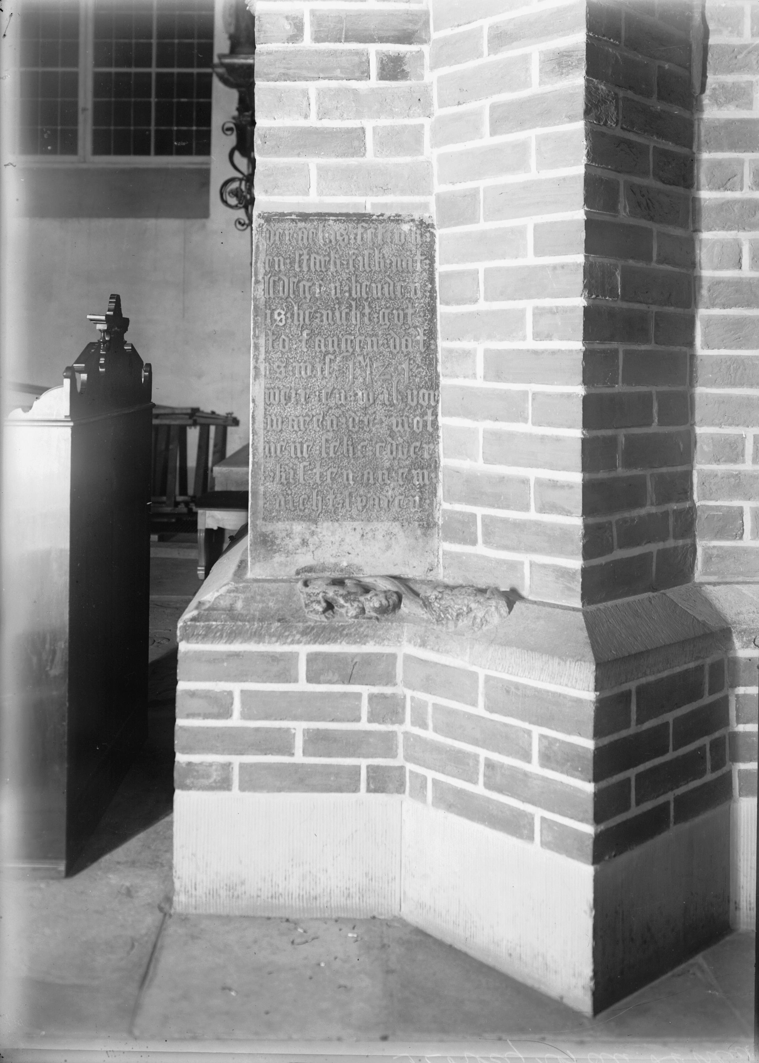Pelare, "ålpelaren", med inskrift och skulptur av Adam van Düren, 1521.