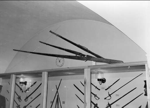 Karlsborgs museum, monter i husardelen, värjor, sablar m.m.