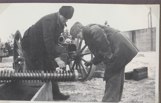 Ammunitionsfabriken i Karlsborg slutet 1800-tal.Kontrollskjutning av nya rekylfjädrar till 7 cm kanon m/02.