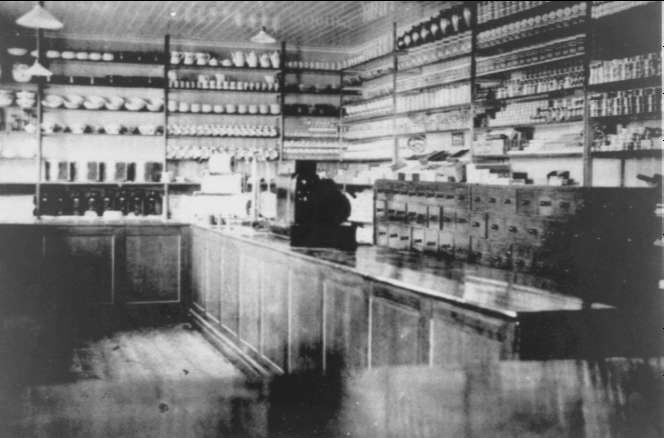 Interiörbild från den första konsumbutiken i Rödesund. Förstoring 25 x 39 cm. Neg finns.