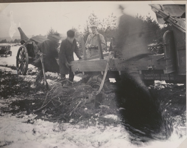 Ammunitionsfabriken i Karlsborg 1920-tal.Transport och uppställning av pjäs.
