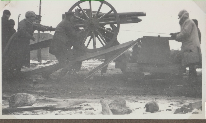 Ammunitionsfabriken i Karlsborg 1920-tal.Transport och uppställning av pjäs.